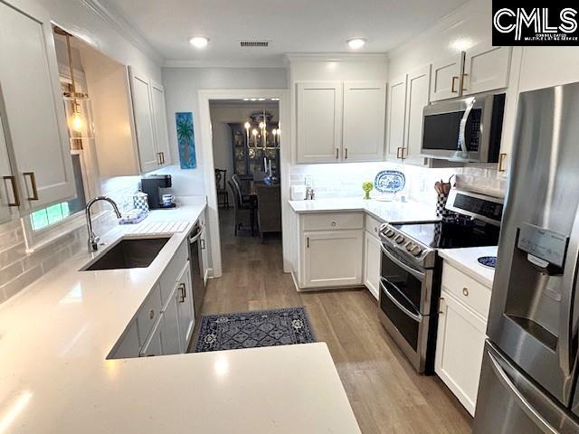 Rarely available, this WildeWood Patio Home has been totally updated & shows like a model home! Lovely foyer opens to the formal dining room on the right & tray ceiling family room with fireplace & wetbar beyond. Just off the family room is a spacious sunroom with wall of floor to ceiling windows/doors & opens to the patio that overlooks the lushly landscaped yard surrounded by tall brick walls for ultimate privacy. The kitchen has beautiful quartz counters, new cabinetry/hardware, stainless appliances, pantry & breakfast area. The breakfast area & family room obtain plenty of natural light from the private atrium. The tray ceiling primary suite also opens to the patio & has a big walkin closest, private bath that has been beautifully updated to include a large, tiled shower, double vanities & free-standing garden tub. 2 additional bedrooms share a hall bath. There is a retractable awning over the patio for year-round outdoor living. A climate-controlled workshop/storage is a plus as well as pull down, attic storage. Easy maintenance, LVP flooring throughout adds to the many designer touches. Sought after WildeWood location & convenient to shopping, restaruants, interstates, Ft Jackson & downtown! Disclaimer: CMLS has not reviewed and, therefore, does not endorse vendors who may appear in listings.