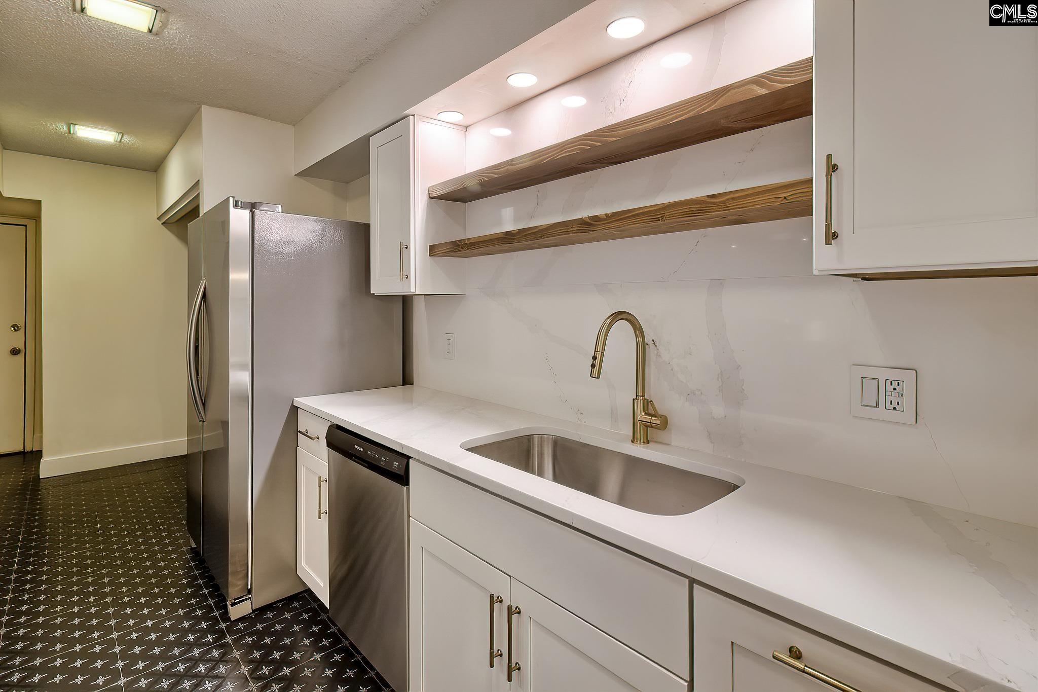 Renovated condo at The Village at Lake Murray with lake access, including a ramp and dock, plus the potential to rent a slip and keep your boat in the water year-round (ask for details). 314 Dryden Lane is just minutes from shopping, restaurants, and the Lake Murray Dam, and stands out in this gated community due to the recent quality renovations. Updates include a completely gutted kitchen with quality soft-close cabinets, new stainless appliances, designer black tile flooring, and quartz counters that lead into the dining room with access to the upper and lower back patios. The living room has also been upgraded with new LED recessed lighting, a remote-controlled fan, and shiplap ceiling and beam details. A large framed mirror on one wall brings the outside in and complements the space. This area also offers easy access to the fenced patio, which includes a gate leading to the common grounds and is just a short walk to the clubhouse, pool, and lake. Back inside, a renovated half bath and laundry room are also located on the main level. Upstairs, you’ll find the owner’s suite with transom lighting, access to the upper deck, a huge closet, and a renovated full bath. The second bedroom is also on the upper level and offers plenty of closet space. HOA covers the clubhouse, pool, exterior and front yard maintenance, Spectrum TV and internet, sprinklers, trash, green areas and common spaces and gated access to the neighborhood. Minimum of 6 month rental possible. Disclaimer: CMLS has not reviewed and, therefore, does not endorse vendors who may appear in listings.